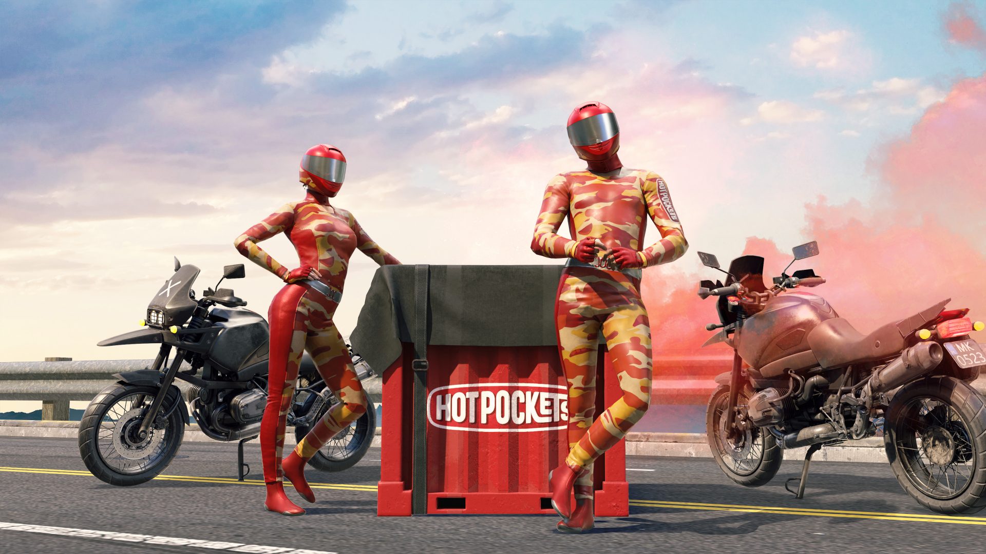 Fifteen million Hot Pocket frozen sandwich packages were adorned with special PUBG: Battlegrounds branding, featuring the tightly-fitted PUBG mascot character holding his iconic frying pan. Purchasing these special PUBG: Battlegrounds Hot Pockets boxes allowed players to earn a set of unique Hot Pockets-themed gear that can be worn while playing the battle royale.