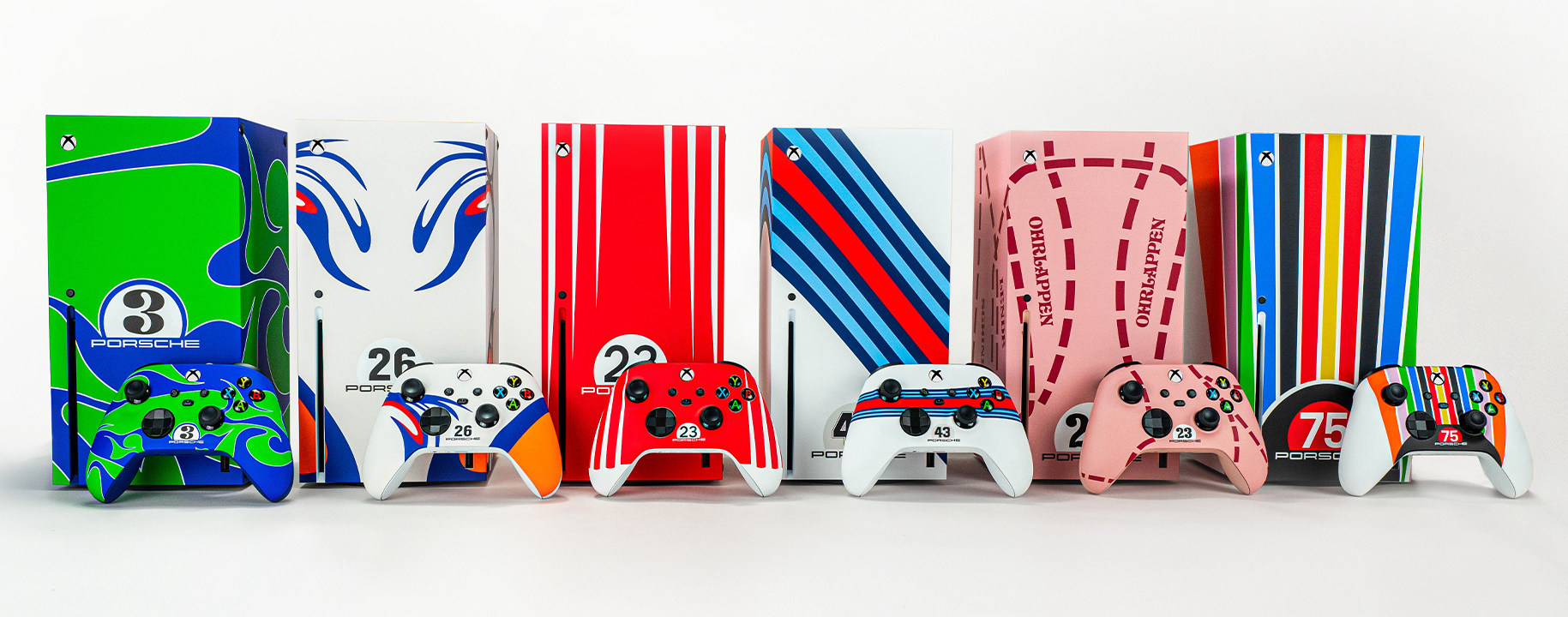 Xbox worked closely with Porsche to bring their iconic design to the platform through hits like the Forza franchise. The Xbox 75th Anniversary collection pays homage to six of Porsche’s most unforgettable looks by reimagining them for the Xbox Series X console and accompanying controllers. Xbox unveiled the six limited-edition console designs at major auto and gaming events around the globe over the summer: